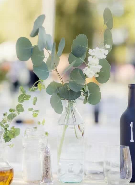首先介紹這個大圓葉的尤加利,這種大圓葉如果細(xì)分的話也分很多種,比如蘋果桉、銀葉桉等等。大圓葉跟白色系花材搭配簡直絕配。