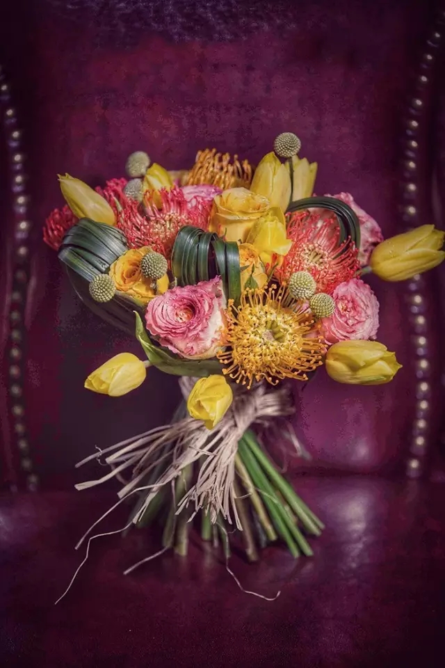 搭配酒店的絲絨靠背椅 讓照片中的捧花熠熠生輝