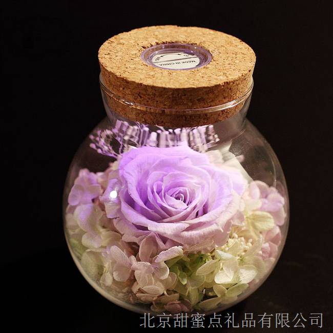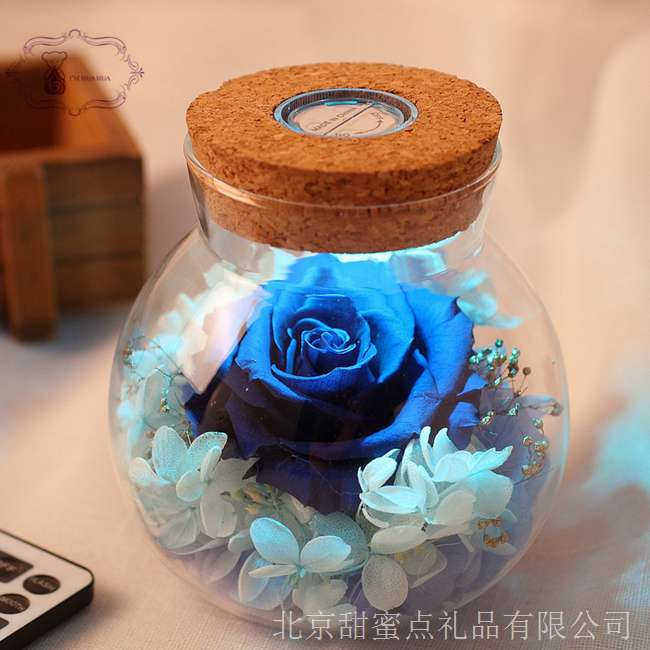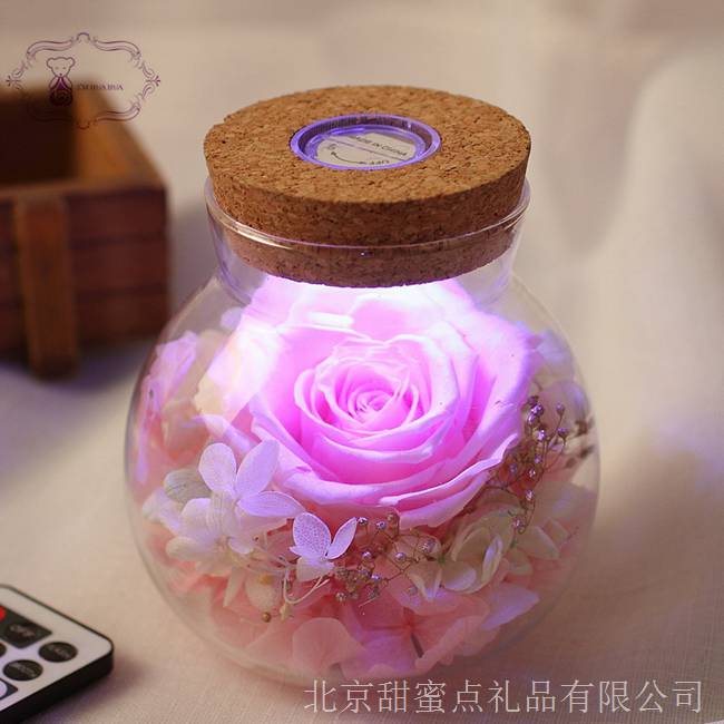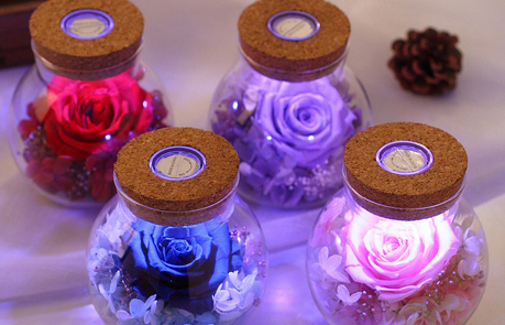 秋日傍晚,手提永生花七彩燈許愿瓶在靜謐的小路點亮,燈光下,愛人的臉龐也多了些許柔和,漆黑的夜空在燈光的照耀下也多了幾分神秘!