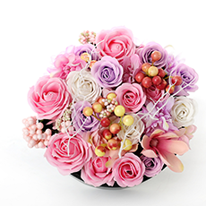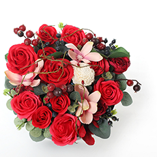 將永生花染色處理,3到5天晾干,成品花頭,整個(gè)制作過程需要10天以上。