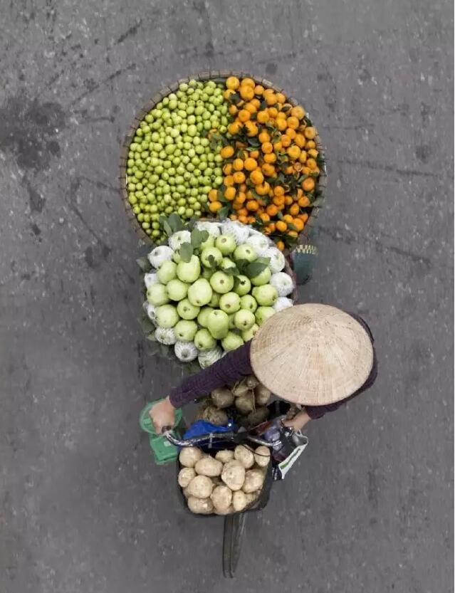 攝影師Loes Heerink在越南河內(nèi)的天橋上,看到那些趕早市的自行車商販,于是就拍下了這組很美的圖片