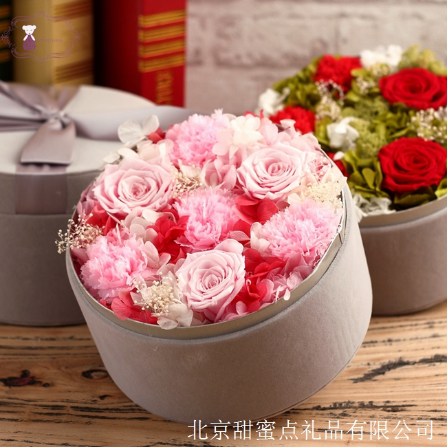 首先是最開始比較流行的方形紙盒材質(zhì)永生花